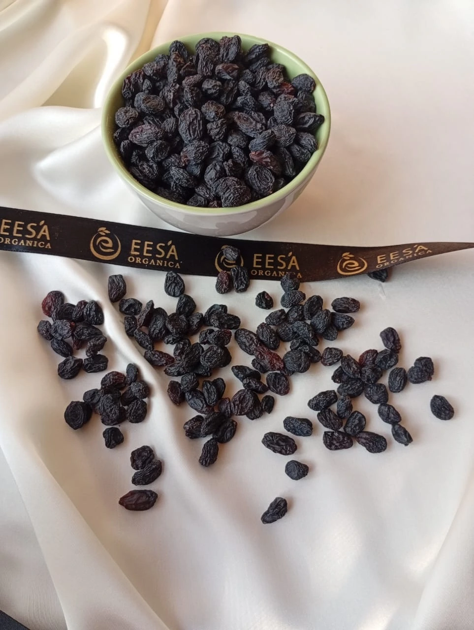 Sweet, soft, and seedless — EESA Organica’s black raisins are rich in antioxidants, iron, and natural energy.